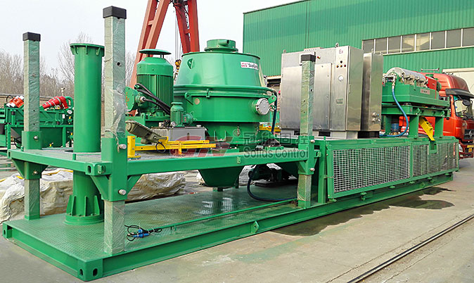 該系統(tǒng)主要包括一臺鉆屑甩干機(jī)、一臺用于廢漿處理的高速變頻臥螺離心機(jī),并配有泥漿輸送泵系統(tǒng),該撬裝式設(shè)計,可以完成鉆井廢物屑干燥處理,鉆井液的循環(huán)利用,并且移動方便,適合隨鉆及集中處理工況。